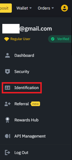 마찬가지로 사람모양 아이콘에 마우스를 올리면 나오는 Identification을 클릭하여 개인 신원인증을 진행합니다.