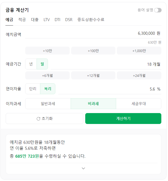 위 사진에서 확인할 수 있듯이 이는 일반과세 기준 연 6.6%, 비과세 기준 연 5.6%의 예금이자와 동일하다.