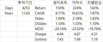 엄지포트는 제 포트폴리오의 이론적인 수익률입니다. 매일 리밸런싱한것과 비슷할 것 같습니다.