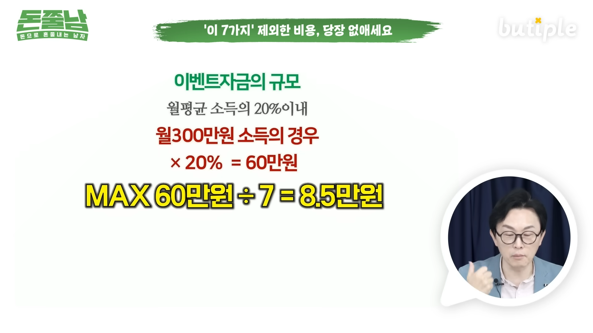 이벤트 자금의 규모는 월평균 소득의 20%이내로한다.