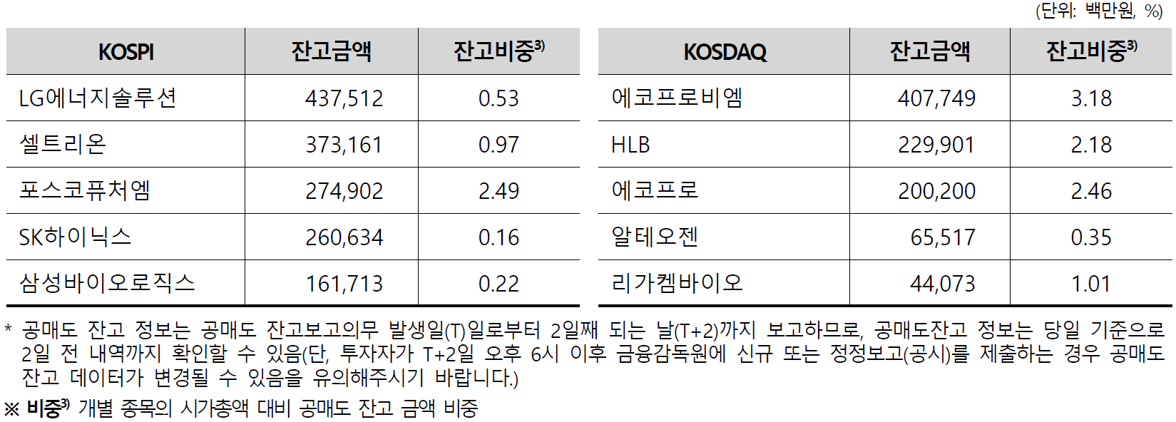 ▣ 공매도 잔고금액 상위 종목 (1/23)