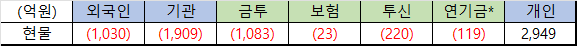 ② 주요 투자자별 동향 : 매수(개인) vs. 매도(외국인, 기관)