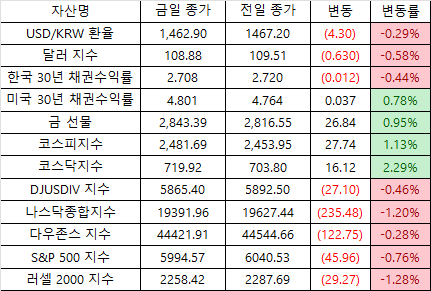 * 그 외 미국 지수 인베스팅닷컴 종가기준(한국과 하루 차이)