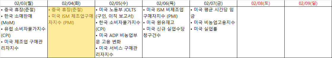 멕시코와 캐나다의 관세 부과일을 02/01에서 02/04로 변경했던 것도 이번 관세 유예를 어느 정도 예상할 수 있었던 근거가 되었다고 생각합니다.