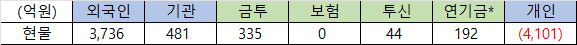 ② 주요 투자자별 동향 : 매수(외국인, 기관) vs. 매도(개인)