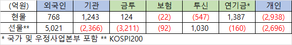 - 외국인(억원) : 운송장비·부품 +534, 전기·전자 +369, 제약 +341