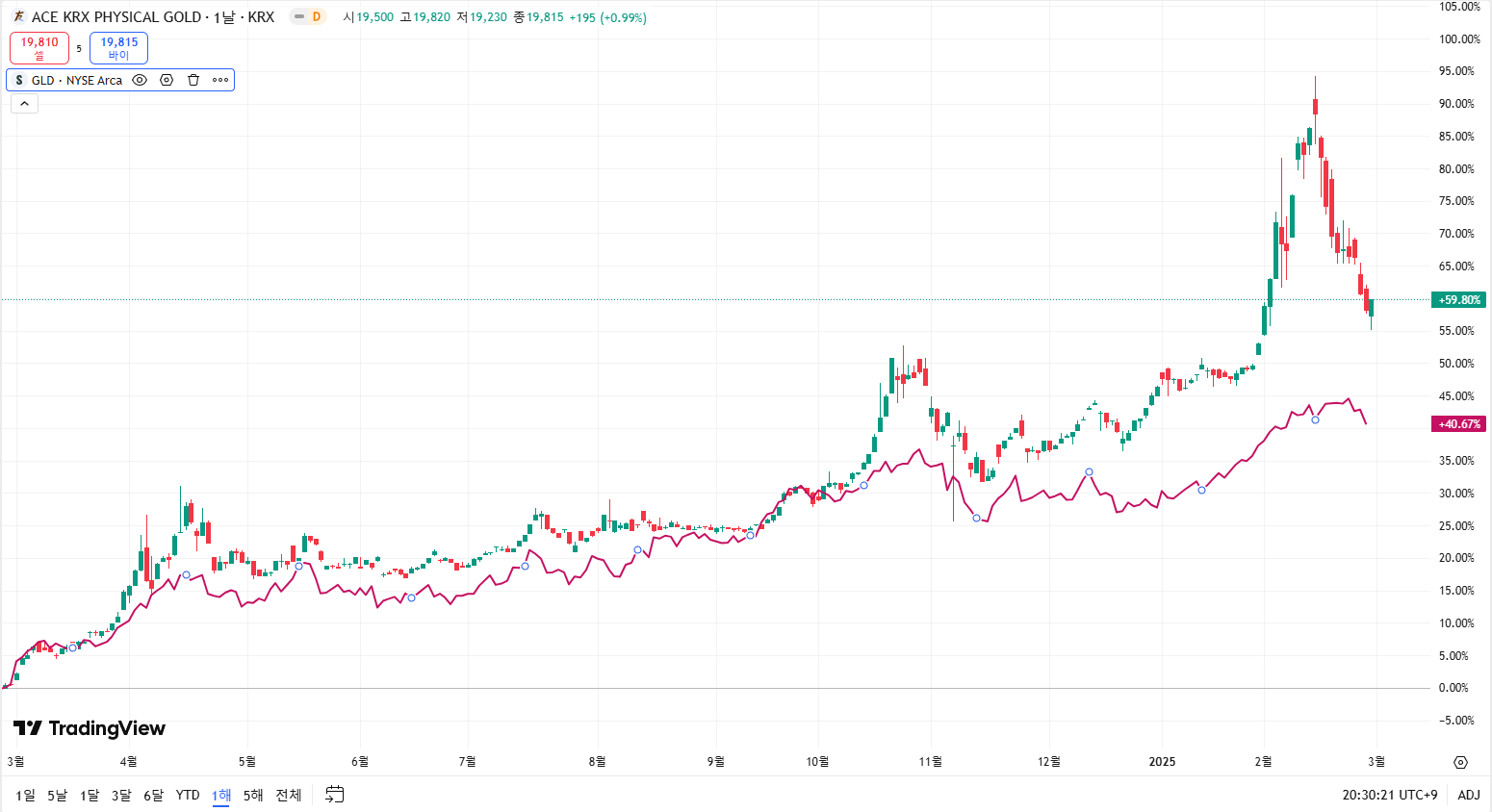 혹은 한국의 금을 매도하고 미국의 금 ETF(GLD, IAU 등)로 이동하는 전략도 가능했죠.