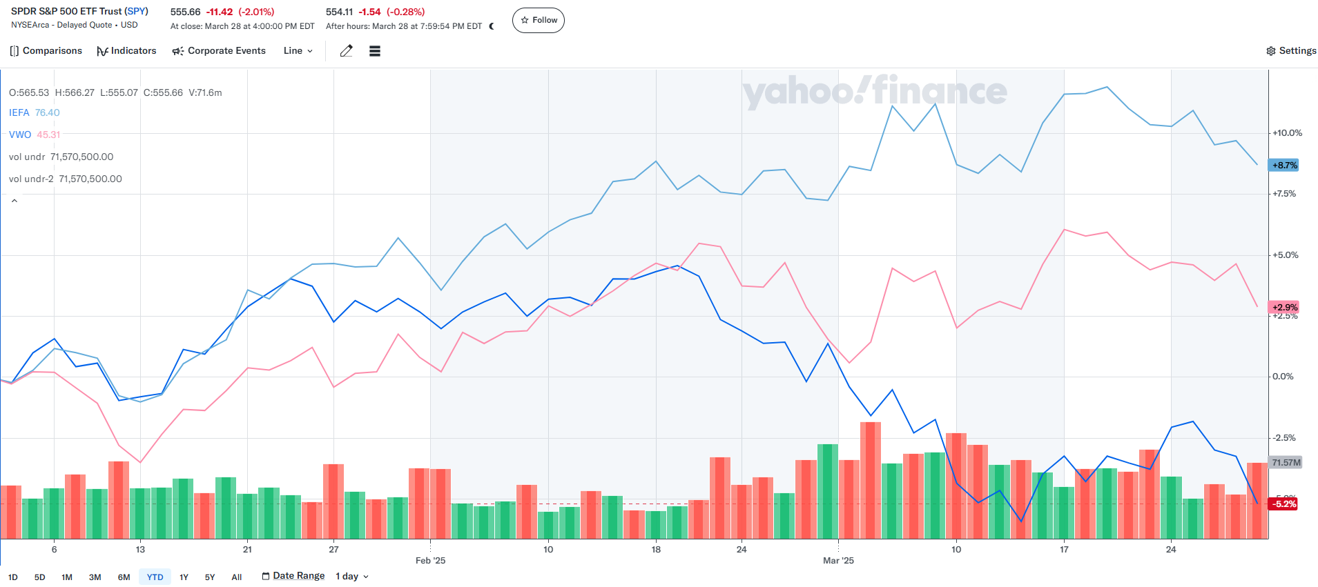 실제로 북미를 제외한 선진국 시장에 투자하는 IEFA ETF는 연초 대비 8.7% 상승, 이머징 마켓에 투자하는 VWO ETF는 2.9% 상승하며, 미국 S&P500에 투자하는 SPY ETF보다(-5.2%) 높은 수익률을 기록하는 중입니다.