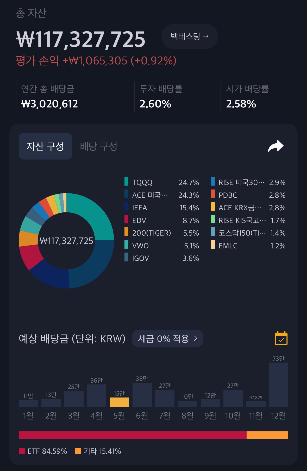 물론 여기서 조금 더 줄인다 해도 티가 나지도 않을것같고, 더 많이 줄이면 분산 효과를 포기하게 될것같아 지금의 비중을 유지하긴 하겠지만 앞으로도 계속 고민할것같습니다.