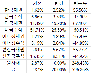한국 주식과 채권은 포함하지 못해 조금은 오차가 있을것같습니다.