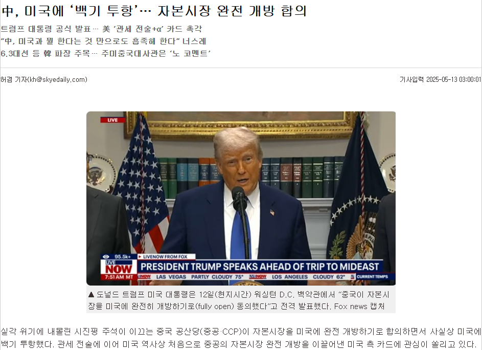 저는 이런류의 찌라시를 신뢰하진 않습니다. 하지만 이런 찌라시와 함께 트럼프 대통령의 미중 관세협상 발표에서 "China will also suspend and remove all of its non-monetary barriers." 라고 발언한것이 신경쓰여 조금 더 조사해보기로 했습니다.