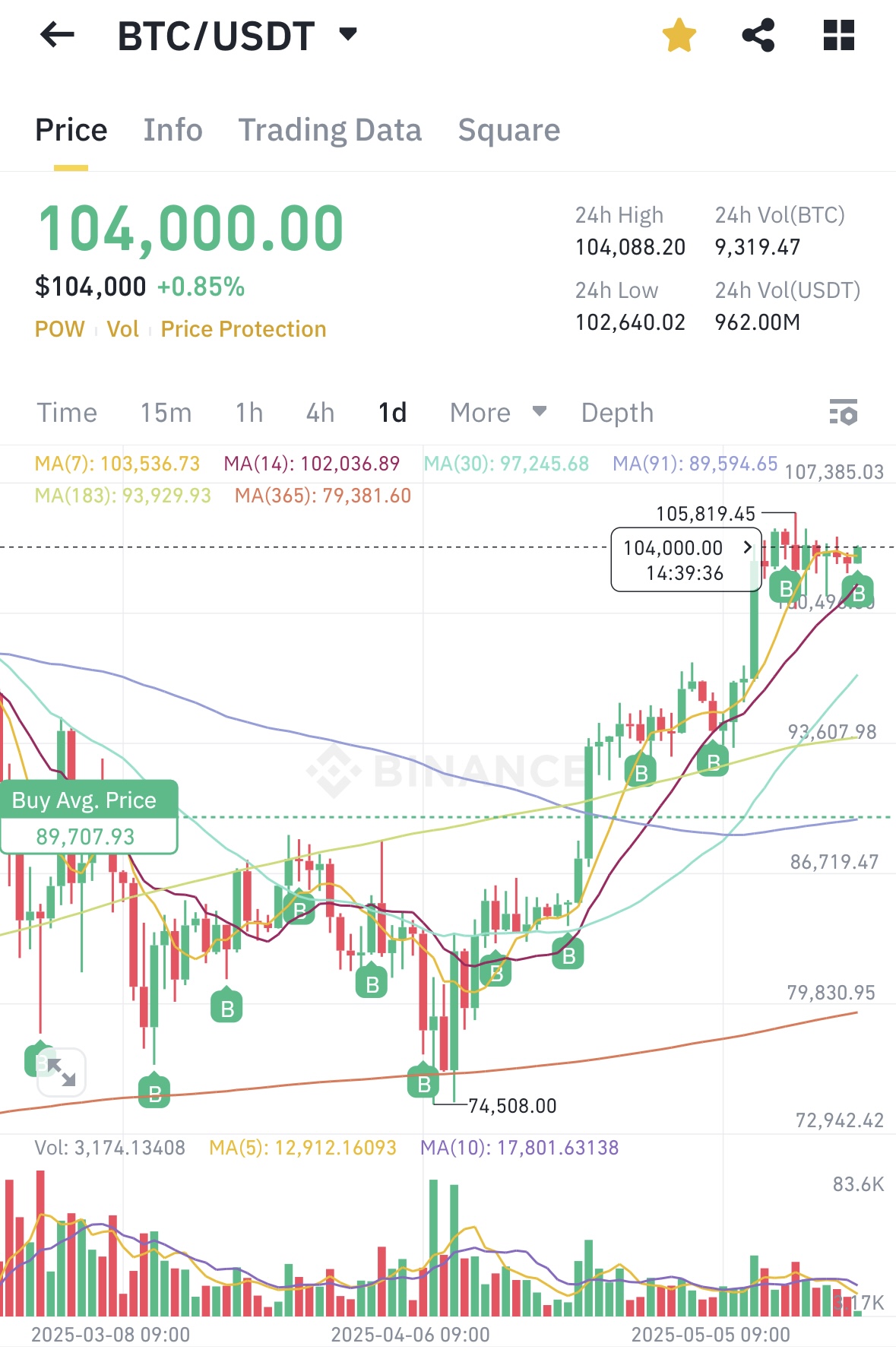 공교롭게도 비트코인이 현재 $104k를 시험하고 있네요.