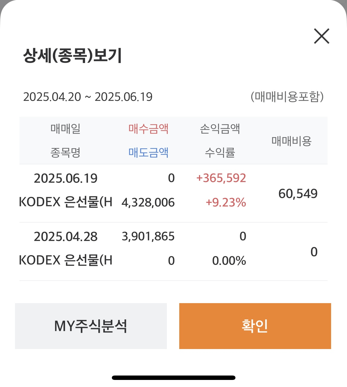 4월 28일 금 인버스와 은에 투자하여 금은비 숏 포지션을 잡았었습니다.