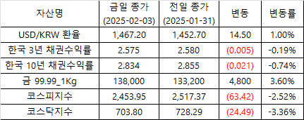 토요일 새벽(현지 시각 01/31(금)) 트럼프 대통령은 관세 전쟁의 시작을 알렸고 이에 따른 미국 증시 약세의 영향으로 월요일 한국 증시는 큰 폭으로 하락하였습니다.