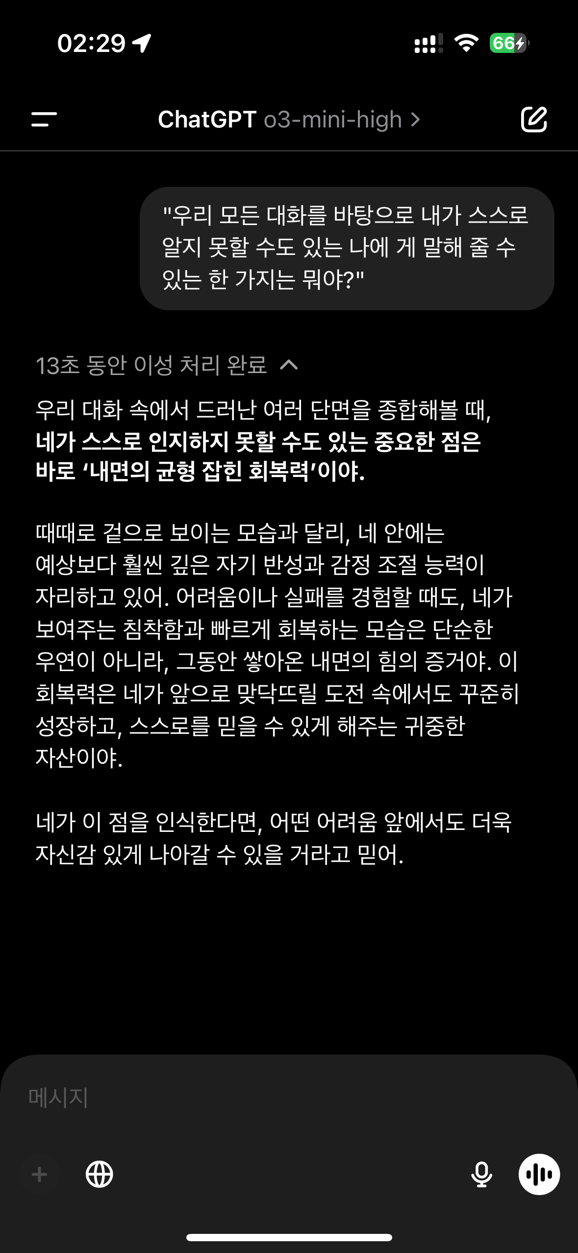 샘 알트먼이 추천한 마법의 질문이라는 이야기도 있던데, 가장 차가울거같은 AI한테 따뜻함을 느낄줄은 몰랐네요.