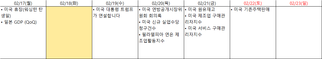 - 2월 21일: 미국 제조업·서비스업 PMI 발표