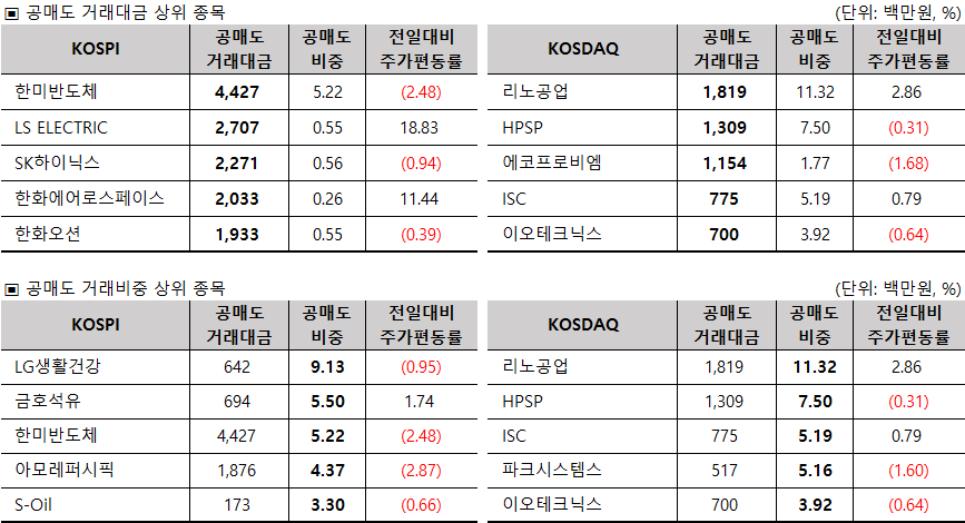 [3. 국내 증시 마감 및 공매도 동향]