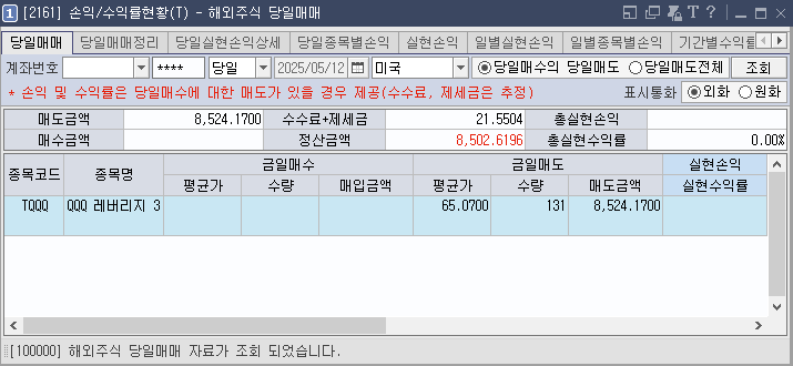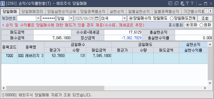 4월 29일 트럼프 취임 100일 행사를 기대하며 TQQQ를 매수했었습니다. 그리고 오늘 매도를 진행했습니다.